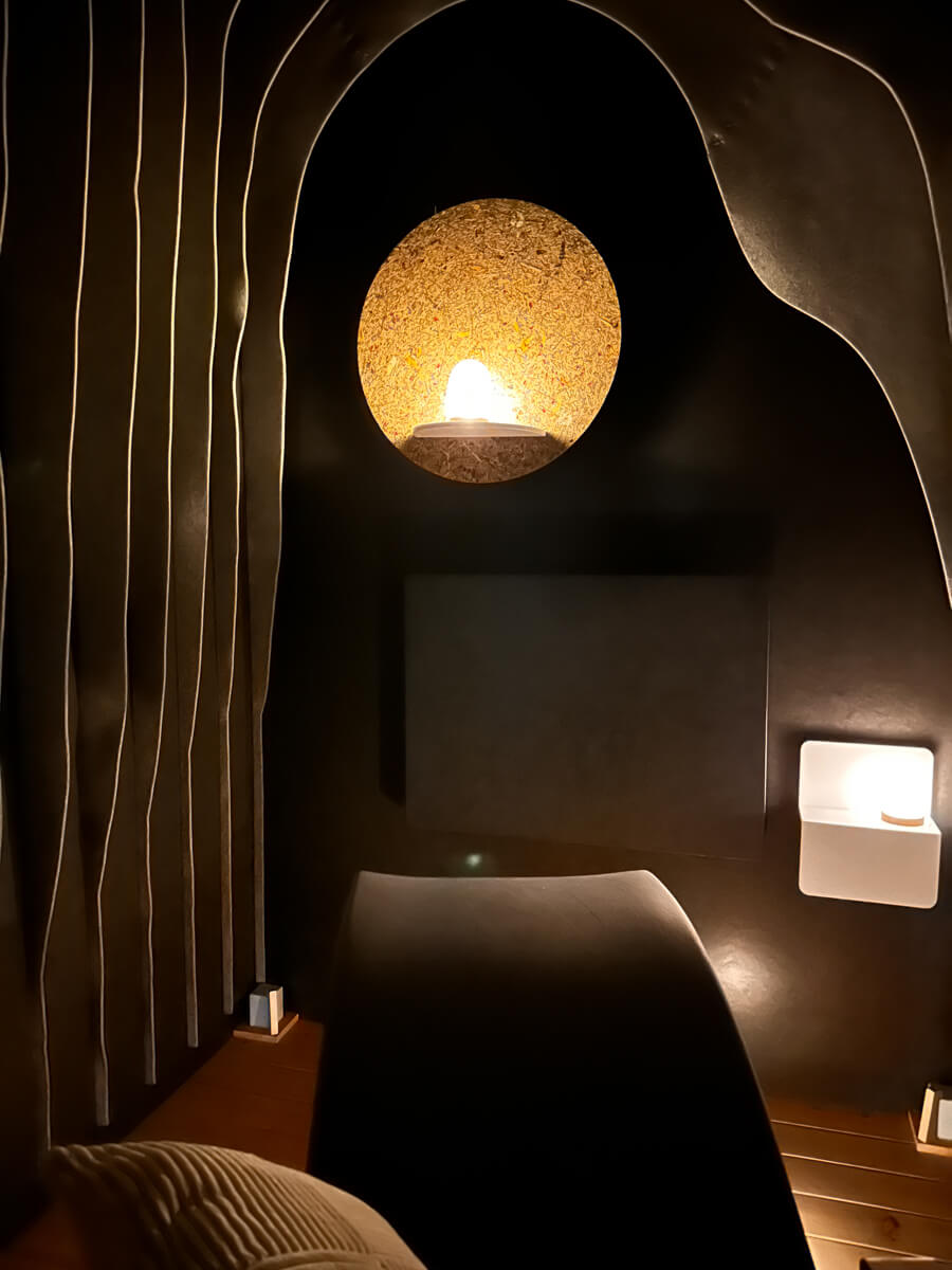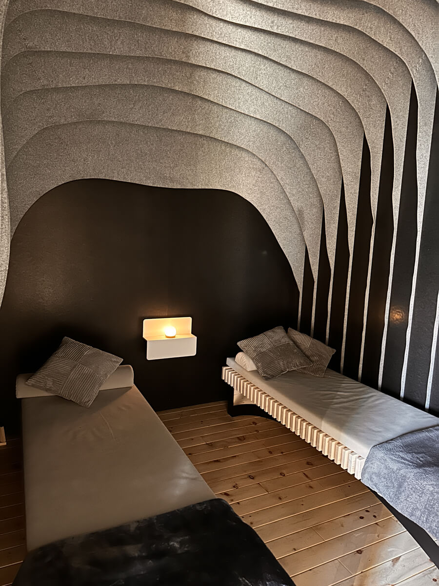 - Gehe in deinen gebuchten Raum. Die innere Tür kann verriegelt werden, wenn du möchtest. Die Lampe kannst du gerne auf der weißen Ablage abstellen oder ausschalten.